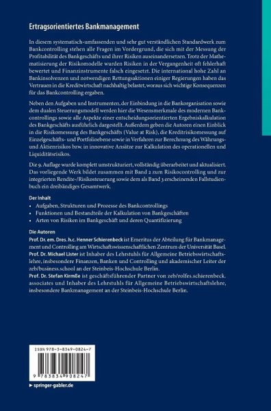 In diesem systematisch-umfassenden und sehr gut verständlichen Standardwerk zum Bankcontrolling stehen alle Fragen im Vordergrund, die sich mit der Messung der Profitabilität des Bankgeschäfts und ihrer Risiken auseinandersetzen. Neben den Aufgaben und Instrumenten, der Einbindung in die Bankorganisation sowie dem dualen Steuerungsmodell werden hier die Wesensmerkmale des modernen Bankcontrollings sowie alle Aspekte einer entscheidungsorientierten Ergebniskalkulation des Bankgeschäfts ausführlich dargestellt. Außerdem geben die Autoren einen Einblick in die Risikomessung des Bankgeschäfts (Value at Risk), die Kreditrisikomessung auf Einzelgeschäfts- und Portfolioebene sowie in Verfahren zur Berechnung des Währungs- und Aktienrisikos bzw. in innovative Ansätze zur Kalkulation des operationellen und Liquiditätsrisikos. Das vorliegende Werk bildet zusammen mit Band 2 zum Risikocontrolling und zur integrierten Rendite-/Risikosteuerung sowie dem als Band 3 erscheinenden Fallstudienbuch ein dreibändiges Gesamtwerk.