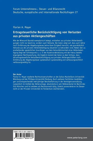 Wie der Wirecard-Skandal exemplarisch belegt, entstehen aus privaten Aktienbeteiligungen nicht nur Gewinne, sondern auch Verluste. Der Autor zeigt auf, dass auch Jahre nach Einführung der Abgeltungsteuer keine klare Einigkeit herrscht, wie grundsätzlich Verluste aus der privaten Aktienbeteiligung steuerlich zu behandeln sind. Neben den zu erarbeitenden gesetzlichen Grundlagen aus dem Verlustblickwinkel einer Aktienbeteiligung liegt der Schwerpunkt u. a. in der Auseinandersetzung mit der hierzu bereits ergangenen Rechtsprechung. Als Ergebnis kommt der Autor zu dem Schluss, dass die ertragsteuerliche Verlustberücksichtigung aus privaten Aktiengeschäften nach Einführung der Abgeltungsteuer systematisch systemwidrig und verfassungsrechtlich verfassungswidrig ist.