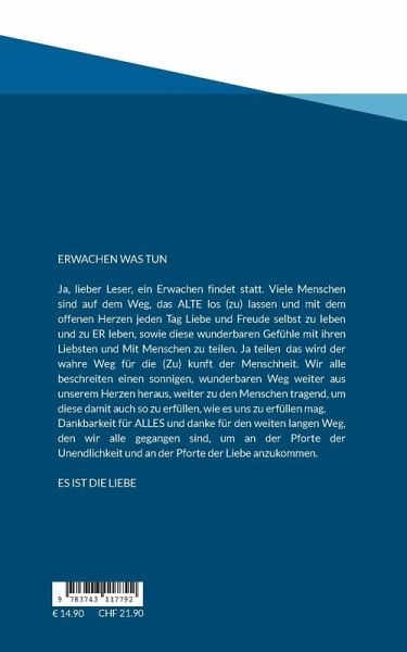 ERWACHEN WAS TUNJa, lieber Leser, ein Erwachen findet statt. Viele Menschen sind auf dem Weg, das ALTE los (zu) lassen und mit dem offenen Herzen jeden Tag Liebe und Freude selbst zu leben und zu ER leben, sowie diese wunderbaren Gefühle mit ihren Liebsten und Mit Menschen zu teilen. Ja teilen das wird der wahre Weg für die (Zu) kunft der Menschheit. Wir alle beschreiten einen sonnigen, wunderbaren Weg weiter aus unserem Herzen heraus, weiter zu den Menschen tragend, um diese damit auch so zu erfüllen, wie es uns zu erfüllen mag. Dankbarkeit für ALLES und danke für den weiten langen Weg, den wir alle gegangen sind, um an der Pforte der Unendlichkeit und an der Pforte der Liebe anzukommen. ES IST DIE LIEBE