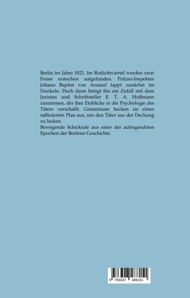 Die Berliner Oberschicht ist in Aufruhr: Zum zweiten Mal innerhalb von wenigen Wochen ist ein zahlender Kunde des Rotlichtviertels erstochen aufgefunden worden. Polizei-Inspektor Johann Baptist von Arnaud tappt zunächst im Dunkeln, bis ein junger Adeliger, dem es durch einen Sprung in die nächtliche Spree gelungen ist, dem Täter zu entkommen, bei Arnaud ein überraschendes Geständnis ablegt. Indessen hat die Polizeidirektion, der Skandale überdrüssig, mit einem Großaufgebot der Gendarmerie den Bordellbetrieb faktisch lahmlegen lassen. Arnaud, der seine Bemühungen, an den Täter heranzukommen, zunichte gemacht sieht, wendet sich an den Kammergerichtsrat E. T. A. Hoffmann, der sich eine raffinierte Falle ausdenkt, um den Mörder aus der Deckung zu locken-was ihm dann auch gelingt, aber anders als geplant.
