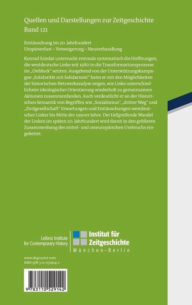 Konrad Sziedat untersucht erstmals systematisch die Hoffnungen, die westdeutsche Linke seit 1980 in die Transformationsprozesse im "Ostblock" setzten. Ausgehend von der Unterstützungskampagne "Solidarität mit Solidarnosc" kann er mit den Möglichkeiten der historischen Netzwerkanalyse zeigen, wie Linke unterschiedlichster ideologischer Orientierung wiederholt zu gemeinsamen Aktionen zusammenfanden. Auch verdeutlicht er an der Historischen Semantik von Begriffen wie "Sozialismus", "dritter Weg" und "Zivilgesellschaft" Erwartungen und Enttäuschungen westdeutscher Linker bis Mitte der 1990er Jahre. Der tiefgreifende Wandel der Linken im späten 20. Jahrhundert wird damit in den größeren Zusammenhang des mittel- und osteuropäischen Umbruchs eingebettet.