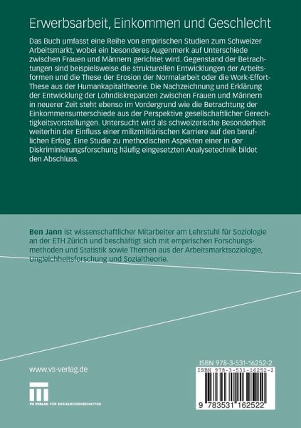 Das Buch umfasst eine Reihe von empirischen Studien zum Schweizer Arbeitsmarkt, wobei ein besonderes Augenmerk auf Unterschiede zwischen Frauen und Männern gerichtet wird. Gegenstand der Betrachtungen sind beispielsweise die strukturellen Entwicklungen der Arbeitsformen und die These der Erosion der Normalarbeit oder die Work-Effort-These aus der Humankapitaltheorie. Die Nachzeichnung und Erklärung der Entwicklung der Lohndiskrepanzen zwischen Frauen und Männern in neuerer Zeit steht ebenso im Vordergrund wie die Betrachtung der Einkommensunterschiede aus der Perspektive gesellschaftlicher Gerechtigkeitsvorstellungen. Untersucht wird als schweizerische Besonderheit weiterhin der Einfluss einer milizmilitärischen Karriere auf den beruflichen Erfolg. Eine Studie zu methodischen Aspekten einer in der Diskriminierungsforschung häufig eingesetzten Analysetechnik bildet den Abschluss.