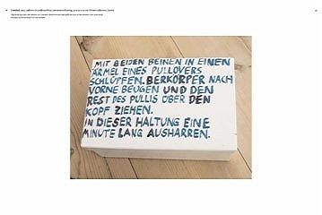 "Es genügt, wen Sie einer Handlungsanweisung des Künstlers Erwin Wurm folgen, und Sie werden Skulptur sein - zumindest für eine Minute." - FAZ zu Erwin Wurms One Minute Sculptures