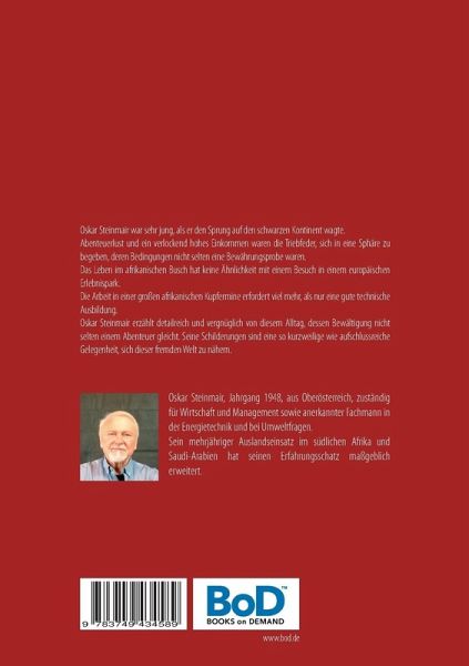 Oskar Steinmair war sehr jung, als er den Sprung auf den schwarzen Kontinent wagte. Abenteuerlust und ein verlockend hohes Einkommen waren die Triebfeder, sich in eine Sphäre zu begeben, deren Bedingungen nicht selten eine Bewährungsprobe waren. Das Leben im afrikanischen Busch hat keine Ähnlichkeit mit einem Besuch in einem europäischen Erlebnispark.Die Arbeit in einer großen afrikanischen Kupfermine erfordert viel mehr, als nur eine gute technische Ausbildung.Oskar Steinmair erzählt detailreich und vergnüglich von diesem Alltag, dessen Bewältigung nicht selten einem Abenteuer gleicht. Seine Schilderungen sind eine so kurzweilige wie aufschlussreiche Gelegenheit, sich dieser fremden Welt zu nähern.