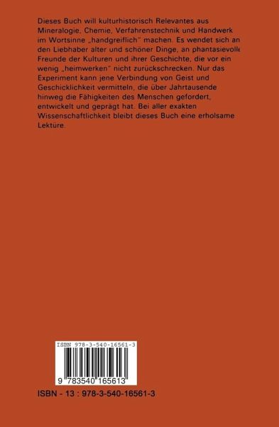 I. Zeit und Technologie.- II. Kupfer.- 1 Bergbau und Erze.- 2 Die Anfänge.- 3 Frühe Industrie.- 4 Raffinieren und Gießen des Kupfers.- III. Die Entdeckung der Legierungen.- 1 Arsenbronze.- 2 Zinnbronze.- 3 Kunstgießerei und Massenguß.- 4 Schlaglichter aus der Geschichte.- 5 Messing.- IV. Blei und Silber.- 1 Die Frühzeit.- 2 Die Kupellation.- 3 Isotopen-Analyse.- 4 Athen und Laurion.- V. Gold.- 1 Gewinnung des Goldes.- 2 Die frühe Technologie des Goldes.- 3 Frühe Analytik: Die Probierkunst entsteht.- 4 Die Anreicherung von Gold aus armen Erzen.- 5 Die Zementation - ein erstes Scheiden von Gold und Silber.- 6 Geld und Gold.- VI. Eisen.- 1 Die Anfänge.- 2 Das Rennfeuer.- 3 Stahl.- VII. Grundanleitung für die Experimente.- Farbtafeln.