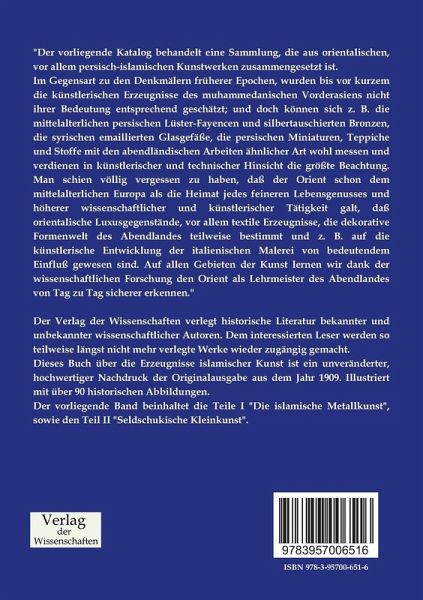 Der vorliegende Band beinhaltet die Teile I "Die islamische Metallkunst", sowie den Teil II "Seldschukische Kleinkunst".