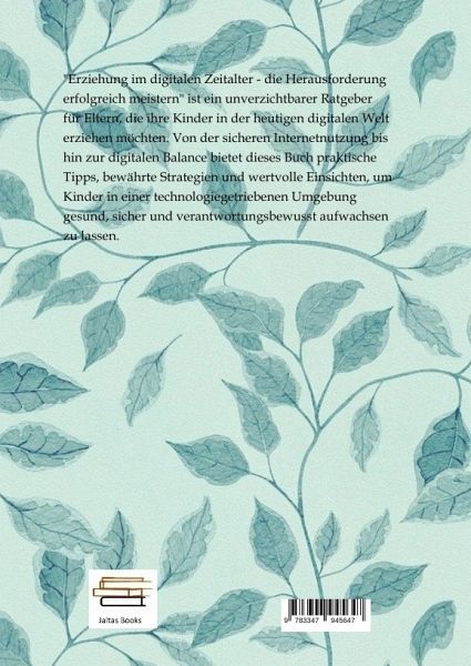 "Erziehung im digitalen Zeitalter - die Herausforderung erfolgreich meistern" ist ein unverzichtbarer Ratgeber für Eltern, die ihre Kinder in der heutigen digitalen Welt erziehen möchten. Von der sicheren Internetnutzung bis hin zur digitalen Balance bietet dieses Buch praktische Tipps, bewährte Strategien und wertvolle Einsichten, um Kinder in einer technologiegetriebenen Umgebung gesund, sicher und verantwortungsbewusst aufwachsen zu lassen.