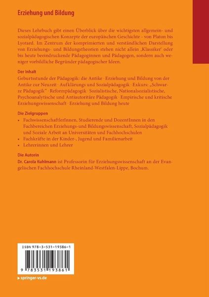 Das Lehrbuch gibt einen Überblick über die wichtigsten allgemein- und sozialpädagogischen Konzepte der europäischen Geschichte - von Platon bis Lyotard. Im Zentrum der komprimierten und verständlichen Darstellung von Erziehungs- und Bildungstheorien stehen nicht allein 'Klassiker' oder bis heute beeindruckende Pädagoginnen und Pädagogen, sondern auch weniger vorbildliche Begründer pädagogischer Ideen.
