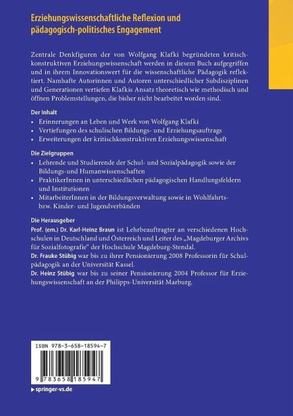 Prof. (em.) Dr. Karl-Heinz Braun ist Lehrbeauftragter an verschiedenen Hochschulen in Deutschland und Österreich und Leiter des "Magdeburger Archivs für Sozialfotografie" der Hochschule Magdeburg-Stendal. Dr. Frauke Stübig war bis zu ihrer Pensionierung 2008 Professorin für Schulpädagogik an der Universität Kassel. Dr. Heinz Stübig war bis zu seiner Pensionierung 2004 Professor für Erziehungswissenschaft an der Philipps-Universität Marburg.