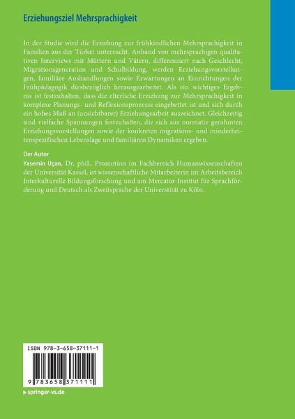 In der Studie wird die Erziehung zur frühkindlichen Mehrsprachigkeit in Familien aus der Türkei untersucht. Anhand von mehrsprachigen qualitativen Interviews mit Müttern und Vätern, differenziert nach Geschlecht, Migrationsgeneration und Schulbildung, werden Erziehungsvorstellungen, familiäre Aushandlungen sowie Erwartungen an Einrichtungen der Frühpädagogik diesbezüglich herausgearbeitet. Als ein wichtiges Ergebnis ist festzuhalten, dass die elterliche Erziehung zur Mehrsprachigkeit in komplexe Planungs- und Reflexionsprozesse eingebettet ist und sich durch ein hohes Maß an (unsichtbarer) Erziehungsarbeit auszeichnet. Gleichzeitig sind vielfache Spannungen festzuhalten, die sich aus normativ gerahmten Erziehungsvorstellungen sowie der konkreten migrations- und minderheitenspezifischen Lebenslage und familiären Dynamiken ergeben.