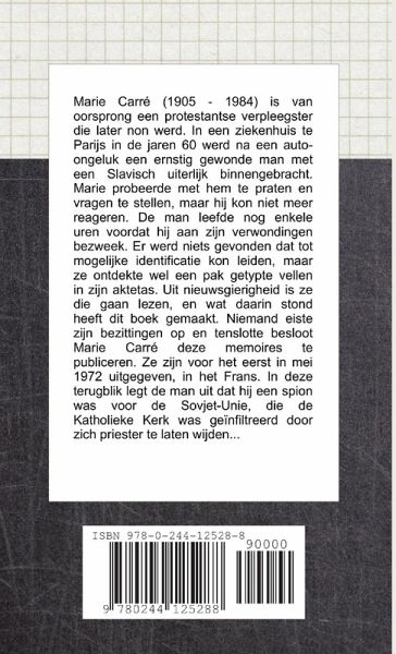 Marie Carré (1905-1984) is van oorsprong een protestantse verpleegster die later non werd. Ze is bekend geworden door de memoires die zij heeft gepubliceerd In een ziekenhuis te Parijs in de jaren 60 werd na een auto-ongeluk een ernstig gewonde man met een Slavisch uiterlijk binnengebracht. Marie probeerde met hem te praten en vragen te stellen, maar hij kon niet meer reageren. De man leefde nog enkele uren voordat hij aan zijn verwondingen bezweek. Er werd niets gevonden dat tot mogelijke identificatie kon leiden, maar ze ontdekte wel een pak getypte vellen in zijn aktetas. Uit nieuwsgierigheid is ze die gaan lezen, en wat daarin stond heeft dit boek gemaakt. De man bleek een spion uit de Sovjet-republiek die in de Katholieke Kerk was geïnfiltreerd door zich priester te laten wijden...
