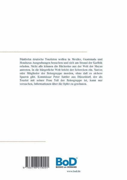 Fünfzehn deutsche Touristen wollen in Mexiko, Guatemala und Honduras Ausgrabungen besuchen und sich am Strand der Karibik erholen. Nicht alle können die Rückreise aus der Welt der Mayas antreten. In die bürgerliche Welt bricht der Schrecken ein. Narcos oder Mitglieder der Reisegruppe morden, ohne dass es sichere Spuren gibt. Kommissar Peter Sattler aus Düsseldorf, der als Tourist mit seiner Frau Teil der Reisegruppe ist, kann nur versuchen, erst einmal Informationen über die Opfer zu gewinnen.