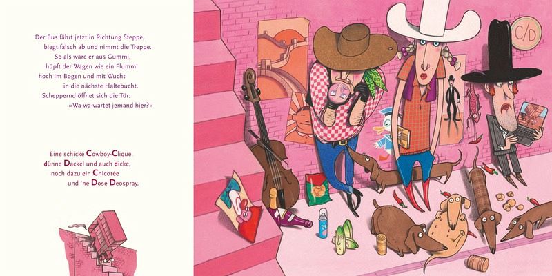 Freche Reime, urkomische Bilder - eine fantastische Bilderbuchreise für kleine ABC-Schützen Eine bunte Truppe voll fantastischer Figuren fährt gemeinsam durchs Buchstabenland: Ein Bär mit Bus-Billett und ein Barsch mit Bügelbrett, eine Elefantengruppe mit 'nem Eimer Erbsensuppe, eine schicke Cowboy-Clique, dünne Dackel und auch dicke ... Wo die Reise wohl hingeht? Ausstattung: durchgehend 4-farbig illustriert