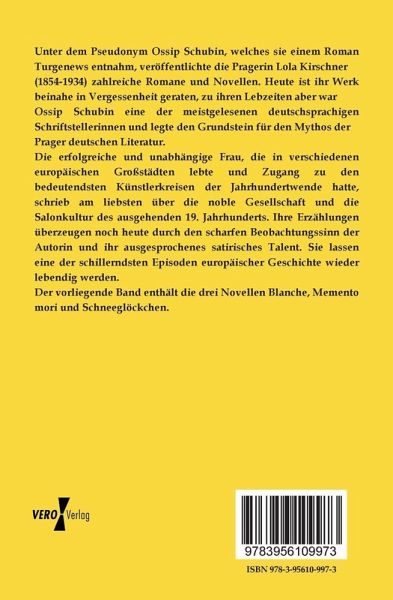 Unter dem Pseudonym Ossip Schubin, welches sie einem Roman Turgenews entnahm, veröffentlichte die Pragerin Lola Kirschner