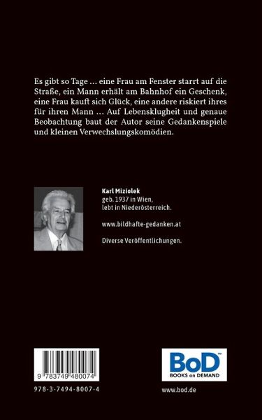 Es gibt so Tage an denen ist vom ersten Blick an alles anders:Man gerät mitten ins Leben, Liebe, Hass und Eifersucht, Sterben, Weinen oder Lachen ...Eine Frau am Fenster schöpft Verdacht, eine andere verfällt dunklem Verlangen; ein Mann erhält am Bahnhof ein Geschenk,eine Frau kauft sich Glück, eine andere riskiert ihres für ihren Ehemann; ein Frühstück wird der Katze geopfert, eine griechische Idylle zur gefährlichen Falle ...Auf Lebensklugheit, genaue Beobachtungen und Freude am Experimentieren baut der Autor seine Gedankenspiele, kleinen Verwechslungskomödien und stimmungsvollen Genre-Variationen.