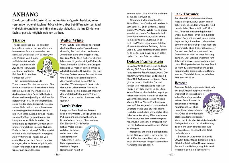Mit diesem Buch kann man Vätern auf lustige Weise sagen, dass sie einen großartigen Job machen - zumindest im Vergleich zu bekannten Vätern der Popkultur und der Geschichte wie Darth Vader oder Pharao Echnaton.Nach dem Erfolg von Glenn Boozans New-York-Times-Bestseller "Es gibt viel schlimmere Mütter als dich" zeigt dieses Buch, dass es auch viele Väter gibt, die viel schlimmer sind als man selbst. Welcher Vater würde sich schlecht fühlen im Vergleich zu Jack aus "Shining", Tywin Lannister aus "Game of Thrones" oder Walter White aus "Breaking Bad"?»Bleib cool, wenn alles, was du grillst, wird schimpfend ausgespien.Verkohltes Steak ist nicht so schlimm wie Methamphetamin.«Oder Darth Vader:»Du hast die Brotdose verlegt? Die Windel war verkehrt?Allemal besser als ein Hieb mit scharfem Laserschwert.«Das Buch enthält viele Anspielungen für Popkultur-Nerds und Geschichtsfans sowie einen informativen und lustigen Anhang, der die Macken und Fehler der in dem Buch vorgestellten Väter weiter ausführt. Boozans gereimte Verse, gepaart mit witzigen Illustrationen, machen diesen bunten Band zum perfekten Geschenk für Väter mit Sinn für Humor.»Auch wenn du nicht im Guinness-Buch als bester Vater stehst,findet dein Kind dich insgesamt viel besser als den Rest.«
