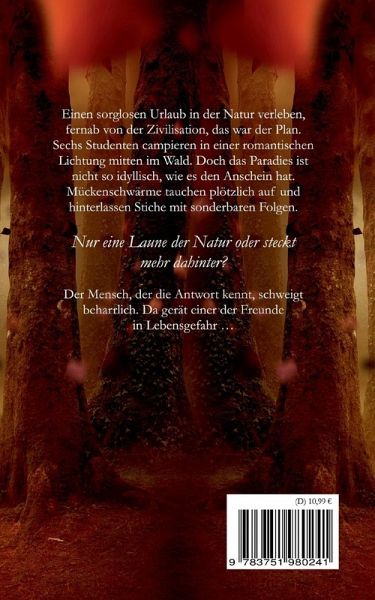 Einen sorglosen Urlaub in der Natur verleben, fernab von der Zivilisation, das ist der Plan. Sechs Studenten campieren in einer romantischen Lichtung mitten im Wald. Doch das Paradies ist nicht so idyllisch, wie es den Anschein hat. Mückenschwärme tauchen auf und hinterlassen Stiche mit sonderbaren Folgen. Nur eine Laune der Natur, oder steckt mehr dahinter? Der Mensch, der die Antwort kennt, schweigt beharrlich. Da gerät einer der sechs in Lebensgefahr.