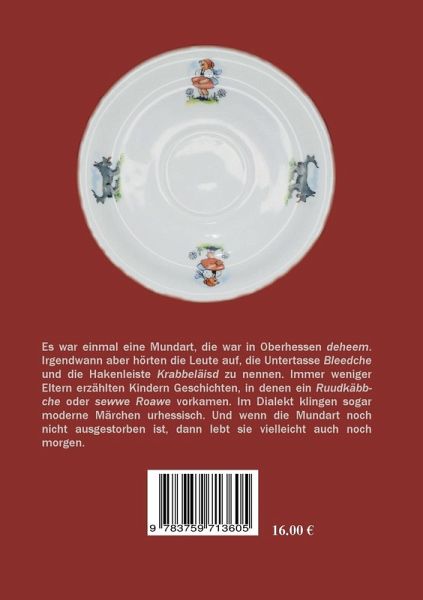 Es war einmal eine Mundart, die war in Oberhessen deheem. Irgendwann aber hörten die Leute auf, die Untertasse Bleedche und die Hakenleiste Krabbeläisd zu nennen. Immer weniger Eltern erzählten Kindern Geschichten, in denen ein Ruudkäbb-che oder sewwe Roawe vorkamen. Im Dialekt klingen sogar moderne Märchen urhessisch. Und wenn die Mundart noch nicht ausgestorben ist, dann lebt sie vielleicht auch noch morgen.