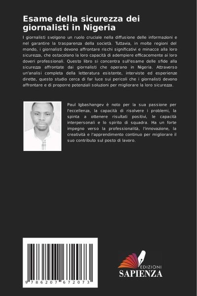 I giornalisti svolgono un ruolo cruciale nella diffusione delle informazioni e nel garantire la trasparenza della società. Tuttavia, in molte regioni del mondo, i giornalisti devono affrontare rischi significativi e minacce alla loro sicurezza, che ostacolano la loro capacità di adempiere efficacemente ai loro doveri professionali. Questo libro si concentra sull'esame delle sfide alla sicurezza affrontate dai giornalisti che operano in Nigeria. Attraverso un'analisi completa della letteratura esistente, interviste ed esperienze dirette, questo studio cerca di far luce sui pericoli che i giornalisti devono affrontare e di proporre potenziali soluzioni per migliorare la loro sicurezza.