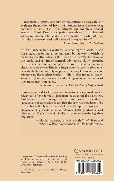 Esau's Tears explores the remarkable and revealing variety of modern anti-Semitism, from its emergence in the 1870s in a racial-political form to the eve of the Nazi takeover, in the major countries of Europe and in the United States. Previous histories have generally been more concerned with description than analysis, and most of the interpretations in those histories have been lacking in balance. The evidence presented in this volume suggests that anti-Semitism in these years was more ambiguous than usually presented, less pervasive and central to the lives of both Jews and non-Jews, and by no means clearly pointed to a rising hatred of Jews everywhere, even less to the likelihood of mass murder. Similarly, Jew-hatred was not as mysterious or incomprehensible as often presented; its strength in some countries and weakness in others may be related to the fluctuating, and sometimes quite different, perceptions in those countries of the meaning of the rise of the Jews in the late nineteenth and early twentieth centuries.