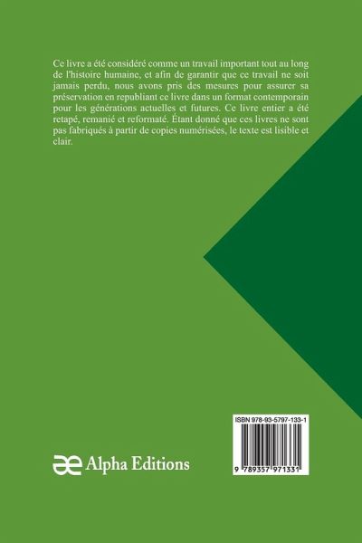 Escal-Vigor, un livre classique et rare qui a été considéré comme essentiel tout au long de l'histoire de l'humanité, pour que cet ouvrage ne soit jamais oublié, nous chez Alpha Editions avons fait des efforts pour sa préservation en rééditant ce livre dans un format moderne pour les générations présentes et futures. Tout ce livre a été reformaté, retapé et conçu. Ces livres ne sont pas constitués de copies numérisées de leur ¿uvre originale et le texte est donc clair et lisible.
