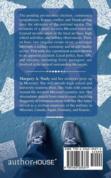 The pending presidential election, communist sympathizers, Korean conflict, and Thanksgiving have the attention of the national media. The residents of a small western Missouri town are focused on renovation of the local air base, high school activities, and holiday observances. Then, on base, two singular events occur: a teenager interrupts a military ceremony and an odd fatality occurs. That same day a prominent woman drowns in an apparent accident. Local police, base APs, and citizens, including feisty teenagers, are involved in the turmoil surrounding the events.