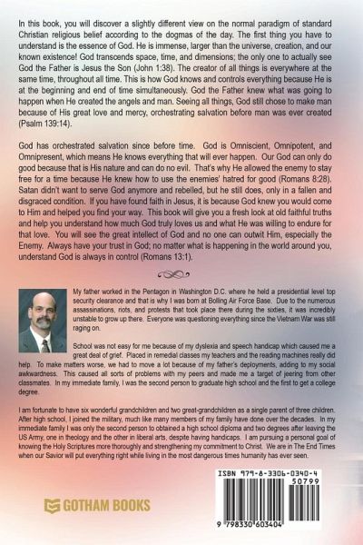 In this book, you will discover a slightly different view on the normal paradigm of standard Christian religious belief according to the dogmas of the day. The first thing you have to understand is the essence of God. He is immense, larger than the universe, creation, and our known existence! God transcends space, time, and dimensions; the only one to actually see God the Father is Jesus the Son (John 1:38). The creator of all things is everywhere at the same time, throughout all time. This is how God knows and controls everything because He is at the beginning and end of time simultaneously. God the Father knew what was going to happen when He created the angels and man. Seeing all things, God still chose to make man because of His great love and mercy, orchestrating salvation before man was ever created (Psalm 139:14).God has orchestrated salvation since before time. God is Omniscient, Omnipotent, and Omnipresent, which means He knows everything that will ever happen. Our God can only do good because that is His nature and can do no evil. That's why He allowed the enemy to stay free for a time because He knew how to use the enemies' hatred for good (Romans 8:28). Satan didn't want to serve God anymore and rebelled, but he still does, only in a fallen and disgraced condition. If you have found faith in Jesus, it is because God knew you would come to Him and helped you find your way. This book will give you a fresh look at old faithful truths and help you understand how much God truly loves us and what He was willing to endure for that love. You will see the great intellect of God and no one can outwit Him, especially the Enemy. Always have your trust in God; no matter what is happening in the world around you, understand God is always in control (Romans 13:1).
