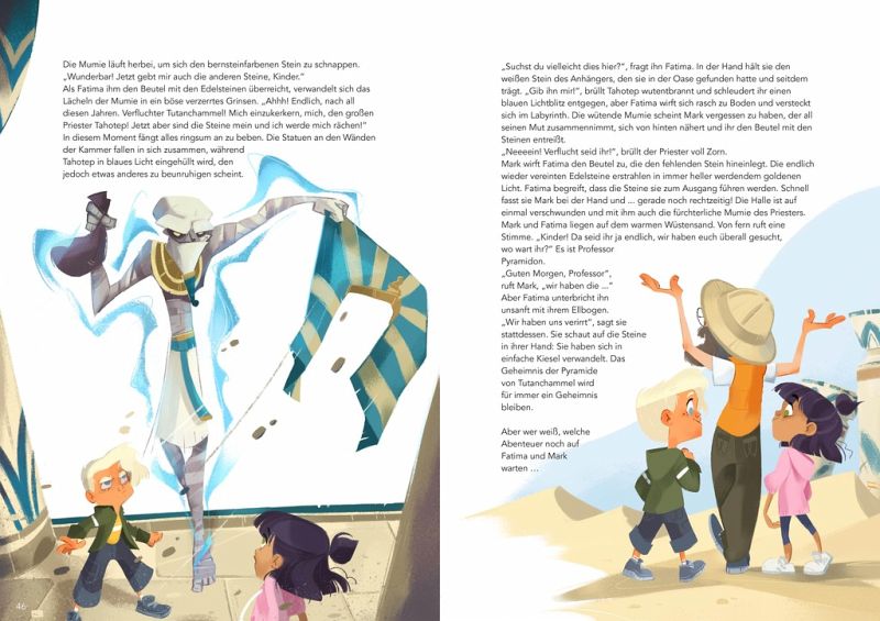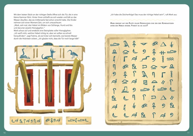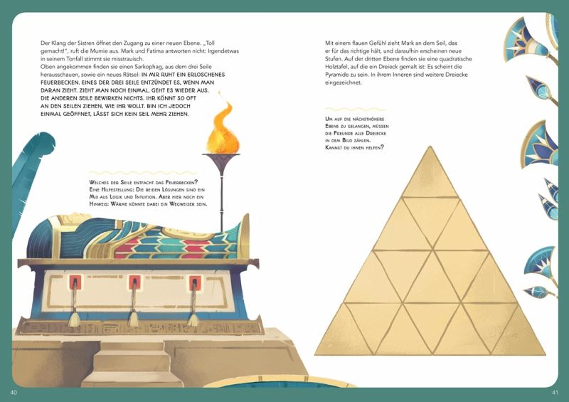 Schlüpfe in die Rolle von Fatima und Mark und begib dich auf ein gefährliches Abenteuer. Die Kinder müssen dem Fluch des Pharaos entkommen. Hilf ihnen und löse Rätsel, finde Hinweise und knacke Codes. In jedem Raum befindet sich der Schlüssel zum nächsten. Escape-Games sind Fluchtspiele, bei denen ein Team in einen Raum eingeschlossen ist und daraus entkommen muss. Mit diesem Aktivitätsbuch hältst du deinen Escape Room in den Händen: Klebe die Sticker auf das beigefügte Poster und entdecke den Weg aus der Pyramide. Dieses Buch sorgt nicht nur für ein spannendes Erlebnis, sondern trainiert Konzentration und logisches Denken. Mit über 60 Stickern und 1 Poster.