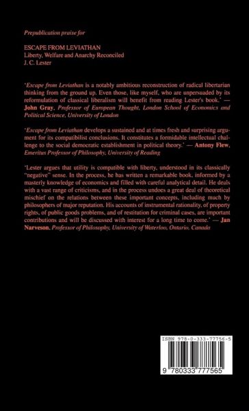 'Lester's book develops a sustained and at times fresh and surprising argument for its compatibilist conclusions. It constitutes a formidable intellectual challenge to the social democratic establishment in Political theory.' - Professor Antony Flew, Emeritus Professor of Philosophy, University of Reading