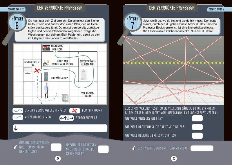 In diesen 10 fesselnden Escape Games in Buchform müssen zahlreiche geheime Nachrichten entschlüsselt, Indizien verfolgt und Codes geknackt werden. Dabei müssen die Detektive ein Gespür für Logik und eine schnelle Beobachtungsgabe entwickeln, um kryptische Nachrichten zu entschlüsseln und damit entfliehen zu können. Ganz nebenbei können spielerisch die Mathekenntnisse wiederholt und vertieft werden. Ein wahres Escape Adventure!