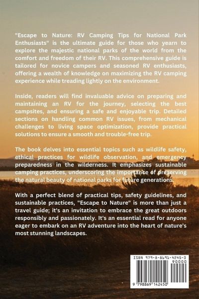 Are you someone who has ever fantasized of getting away from the rush and bustle of everyday life, completely submerging yourself in the wild beauty of nature, and uncovering the hidden riches that are found in the national parks of the United States? If that is the case, you are not the only one. Considering that we live in a society that is saturated with devices, schedules, and stress, the allure of the great outdoors has never been more compelling. The book "Escape to Nature: RV Camping Tips for National Park Enthusiasts" is the necessary guide you need to go on a transforming journey into the heart of some of the most breathtaking and awe-inspiring landscapes that our planet has to offer. It doesn't matter if you're an experienced RVer wishing to broaden your horizons or a newbie adventurer looking to experience the excitement of your first national park trip; this book is your key to unlocking the mysteries of RV camping in these natural wonders. It is not just about traveling that the concept of RV camping in national parks is being discussed; rather, it is about escaping the mundane, reestablishing a connection with the natural world, and appreciating the enchantment of the great outdoors. Getting up to the sounds of birds singing, soaking in the warmth of a campfire, and looking up at a star-studded sky that is unaffected by the lights of the city are all aspects of this experience. Wildlife encounters, beautiful panoramas, and experiences that will last a lifetime are all part of the experience.