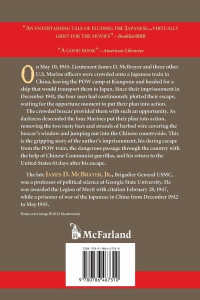 On May 10, 1945, Lieutenant James D. McBrayer and three other U.S. Marine officers were crowded onto a Japanese train in China, leaving the POW camp at Kiangwan and headed for a ship that would transport them to Japan. Since their imprisonment in December 1941, the four men had continuously plotted their escape, waiting for the opportune moment to put their plan into action. The crowded boxcar provided them with such an opportunity. As darkness descended the four Marines put their plan into action, removing the two rusty bars and strands of barbed wire covering the boxcar's window and jumping out into the Chinese countryside. This is the gripping story of the author's imprisonment in China, his daring escape from the POW train, the dangerous passage through the country with the help of Chinese Communist guerillas, and his return to the United States 61 days after his escape.