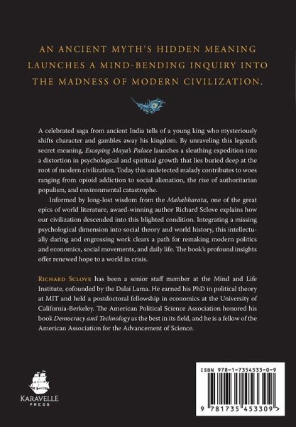 "Mind-blowingly insightful." -Richard B. Norgaard, University of California, Berkeley, and author of Development Betrayed An ancient myth's hidden meaning launches a mind-bending inquiry into the madness of modern civilization. A celebrated saga from ancient India tells of a young king who mysteriously shifts character and gambles away his kingdom. By unraveling this legend's secret meaning, Escaping Maya's Palace launches a sleuthing expedition into a distortion in psychological and spiritual growth that lies buried deep at the root of modern civilization. Today this undetected malady contributes to woes ranging from opioid addiction to social alienation, the rise of authoritarian populism, and environmental catastrophe. Informed by long-lost wisdom from the Mahabharata, one of the great epics of world literature, award-winning author Richard Sclove explains how our civilization descended into this blighted condition. Integrating a missing psychological dimension into social theory and world history, this intellectually daring and engrossing work clears a path for remaking modern politics and economics, social movements, and daily life. This book's profound insights offer renewed hope to a world in crisis.
