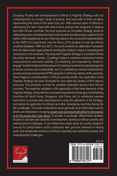 Escaping Poverty and Unemployment in Africa: A Flagship Strategy calls out unemployment as a major cause of poverty, and sees both of them as twins representing two sides of the same bad coin. After several years of failures in addressing the twin crises with stand-alone policies and programs in Nigeria and other African countries, the book proposes an innovative strategy aimed at addressing mass unemployment and mass poverty simultaneously. Inspired by the author's field experience as one of the key actors in the successful implementation of the UNDP-ILO-sponsored Jobs for Africa (JFA) program in over ten African countries (between 1998 and 2001), the book presents an alternative framework from the failed extant approaches for tackling the stubborn crises of unemployment and poverty in the continent. The proposed Flagship Strategy is a cocktail of three key policy elements, namely, (1) putting in place a maximum employment-driven macroeconomic economic stability, (2) mobilizing and empowering "ready-to engage" transformational entrepreneurs for leading investment projects/programs to ensure success and sustainability, and (3) undertaking massive investment for poverty-reducing employment (IPRE) projects in all the key sectors of the economy. Given Nigeria's exceptionalism in Africa's poverty profile, the application of the Flagship Strategy has been illustrated for over eight key sectors of this nation's economy. This presents a model for possible replication across other African countries. The empirical validation in the application of the three elements of the Flagship Strategy, along with the successful experience of emerging industrializing countries (of South Korea, Singapore, and China, etc.) in achieving massive reductions in poverty and unemployment using the elements of the strategy, commends its application to African and other developing countries facing the twin challenges. The book is intended to serve generally as an informative read for all who are interested in escaping poverty and unemployment either by themselves or for the people they care about. It has also, in particular, offered fresh strategic insights to scholars and students of development, working on African poverty and unemployment challenges. It can furthermore easily serve as a policy blueprint/ manual for policymakers and/or politicians with genuine interests in finding quick and sustainable solutions to Africa's daunting and existential poverty and unemployment challenges.