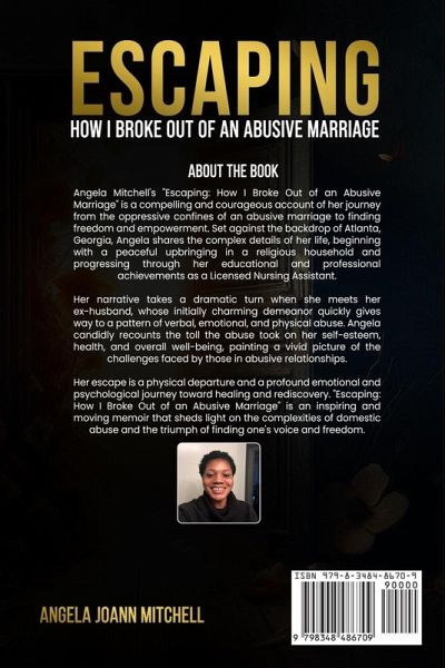 Angela Mitchell's "Escaping: How I Broke Out of an Abusive Marriage" is a compelling and courageous account of her journey from the oppressive confines of an abusive marriage to finding freedom and empowerment. Set against the backdrop of Atlanta, Georgia, Angela shares the complex details of her life, beginning with a peaceful upbringing in a religious household and progressing through her educational and professional achievements as a Licensed Nursing Assistant. Her narrative takes a dramatic turn when she meets her ex-husband, whose initially charming demeanor quickly gives way to a pattern of verbal, emotional, and physical abuse. Angela candidly recounts the toll the abuse took on her self-esteem, health, and overall well-being, painting a vivid picture of the challenges faced by those in abusive relationships. Her escape is a physical departure and a profound emotional and psychological journey toward healing and rediscovery. "Escaping: How I Broke Out of an Abusive Marriage" is an inspiring and moving memoir that sheds light on the complexities of domestic abuse and the triumph of finding one's voice and freedom.