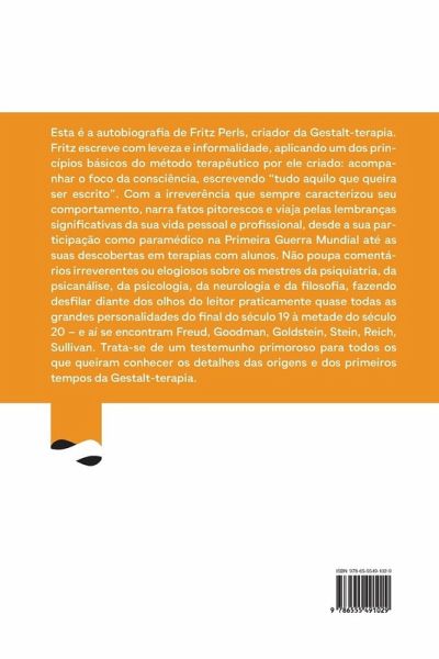 Este livro é uma divertida autobiografia de Fritz Perls, criador da Gestalt-terapia. Fritz escreve com leveza e informalidade, aplicando um dos princípios básicos do método terapêutico por ele criado: acompanhar o foco da consciência, escrevendo ¿tudo aquilo que queira ser escritö. Com a irreverência que sempre caracterizou seu comportamento, narra fatos pitorescos e viaja pelas lembranças significativas da sua vida pessoal e profissional, desde a sua participação como paramédico na Primeira Guerra Mundial até as suas descobertas em terapias com alunos. Não poupa comentários irreverentes ou elogiosos sobre os mestres da psiquiatria, da psicanálise, da psicologia, da neurologia e da filosofia, fazendo desfilar diante dos olhos do leitor praticamente quase todas as grandes personalidades do final do século 19 à metade do século 20 ¿ e aí se encontram Freud, Goodman, Goldstein, Stein, Reich, Sullivan. Trata-se de um testemunho primoroso para todos os que queiram conhecer os detalhes das origens e dos primeiros tempos da Gestalt-terapia.