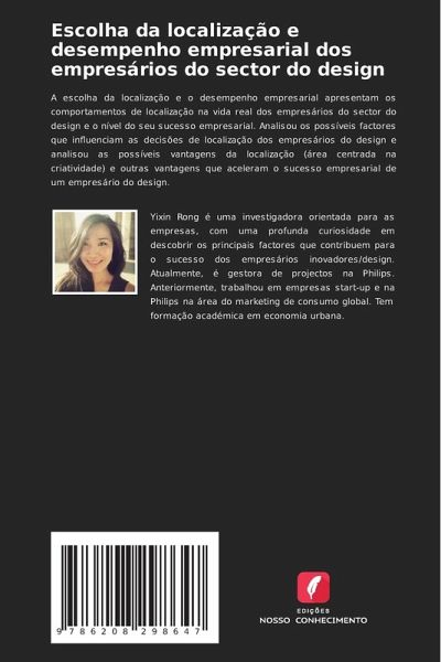 A escolha da localização e o desempenho empresarial apresentam os comportamentos de localização na vida real dos empresários do sector do design e o nível do seu sucesso empresarial. Analisou os possíveis factores que influenciam as decisões de localização dos empresários do design e analisou as possíveis vantagens da localização (área centrada na criatividade) e outras vantagens que aceleram o sucesso empresarial de um empresário do design.