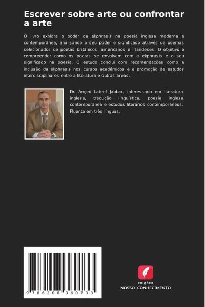 O livro explora o poder da ekphrasis na poesia inglesa moderna e contemporânea, analisando o seu poder e significado através de poemas selecionados de poetas britânicos, americanos e irlandeses. O objetivo é compreender como os poetas se envolvem com a ekphrasis e o seu significado na poesia. O estudo conclui com recomendações como a inclusão da ekphrasis nos cursos académicos e a promoção de estudos interdisciplinares entre a literatura e outras áreas.