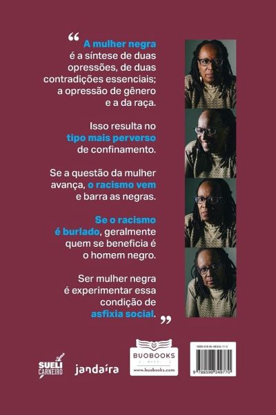 A mulher negra é a síntese de duas opressões, de duas contradições essenciais a opressão de gênero e a da raça. Isso resulta no tipo mais perverso de confinamento. Se a questão da mulher avança, o racismo vem e barra as negras. Se o racismo é burlado, geralmente quem se beneficia é o homem negro. Ser mulher negra é experimentar essa condição de asfixia social.