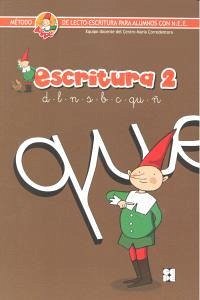 ESCRITURA 2. d, l, n, s, b, c, qu, ñ. Una vez adquirida una buena habilidad y destreza en la ejecución de los distintos trazos realizados en la fase de Preescritura, el niño con discapacidad intelectual debe estar preparado para iniciar el aprendizaje de la escritura. Para alcanzar este objetivo, en el método " Pipe" se han diseñado 5 libros en los cuales se trabajarán, de forma progresiva, la ejecución de los trazos de las distintas grafías. Los libros de escritura siguen un mismo esquema. El aprendizaje de cada grafema comienza con la presentación de una lámina motivadora, en la que aparece Pipe representando el fonema correspondiente, la letra a trabajar en minúscula y la misma letra en línea punteada para ser repasada por el alumno. Posteriormente, la letra se acompaña en cada lámina de imágenes que empiezan o contienen el grafema a aprender, junto con un punteado muy intenso del mismo, en una pauta y el punto de inicio, desde donde se debe iniciar la realización del trazo. A lo largo de las distintas láminas, se continúa proporcionando el punto de inicio, aunque el punteado va siendo cada vez menos intenso hasta desaparecer por completo. Es en este momento del aprendizaje, cuando el alumno debe realizar la copia directa del grafema, para lo cual se presenta una pauta con la letra y debajo otra pauta en la que solo aparece el punto de inicio. Siguiendo un esquema muy similar, se afronta el aprendizaje de la misma grafía en su formato en mayúscula. A medida que el alumno va adquiriendo la destreza en la adquisición de los diferentes grafemas, se van presentando las sílabas, palabras y frases, siguiendo la misma secuencia.