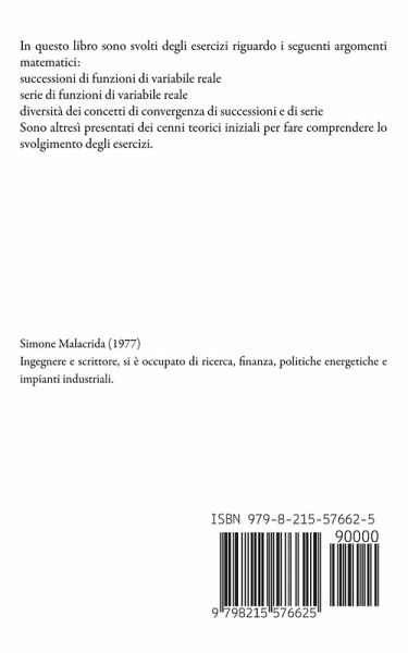 In questo libro sono svolti degli esercizi riguardo i seguenti argomenti matematici: successioni di funzioni di variabile reale serie di funzioni di variabile reale diversità dei concetti di convergenza di successioni e di serie Sono altresì presentati dei cenni teorici iniziali per fare comprendere lo svolgimento degli esercizi.