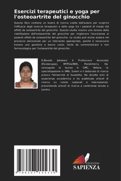 Questo libro contiene un lavoro di ricerca svolto dall'autore per scoprire l'efficacia degli esercizi terapeutici e dello yoga tra i pazienti di mezza età affetti da osteoartrite del ginocchio. Questo studio mostra una visione della riabilitazione dell'osteoartrite del ginocchio per migliorare l'assistenza ai pazienti affetti da osteoartrite del ginocchio. Lo studio può anche aiutare nel processo decisionale per un intervento appropriato, poiché è necessario trovare una gestione a basso costo, facile da somministrare e non farmacologica per l'osteoartrite del ginocchio.