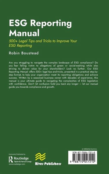 Navigate ESG compliance confidently with the ESG Reporting Manual. Offering 500+ legal tips from a seasoned expert, this practical step-by-step guide ensures you meet reporting obligations and deliver shareholder value. Achieve success in sustainability reporting, climate change, governance, and more.