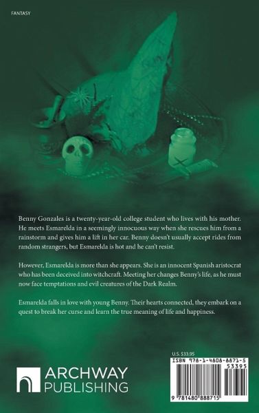 Benny Gonzales is a twenty-year-old college student who lives with his mother. He meets Esmarelda in a seemingly innocuous way when she rescues him from a rainstorm and gives him a lift in her car. Benny doesn't usually accept rides from random strangers, but Esmarelda is hot and he can't resist. However, Esmarelda is more than she appears. She is an innocent Spanish aristocrat who has been deceived into witchcraft. Meeting her changes Benny's life, as he must now face temptations and evil creatures of the Dark Realm. Esmarelda falls in love with young Benny. Their hearts connected, they embark on a quest to break her curse and learn the true meaning of life and happiness.
