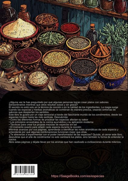 Descubra el fascinante mundo de las especias y hierbas aromáticas con esta guía práctica y detallada que le ayudará a transformar sus platos cotidianos.Este libro sobre especias está organizado en cuatro secciones principales que abarcan desde los fundamentos hasta aplicaciones avanzadas:- El mundo de las especias: Explore las variedades locales y exóticas, aprenda sobre sus perfiles aromáticos y descubra cómo almacenarlas correctamente para mantener su frescura. Conozca las diferentes formas de procesamiento, desde especias enteras hasta extractos.- Combinaciones y aromas: Aprenda los principios básicos para crear mezclas armoniosas, incluyendo técnicas de tostado y proporciones ideales. Descubra cómo el calor afecta a los aromas y cuál es el momento óptimo para añadir cada especia.- Sabiduría ayurvédica: Profundice en las cualidades térmicas y energéticas de las especias, y aprenda a utilizarlas según las estaciones del año para potenciar sus beneficios.- Hierbas aromáticas: Domine el arte de cosechar, procesar y combinar hierbas frescas con especias.Aprenderá a:- Usar correctamente el molinillo de especias- Crear condimentos sin sal saludables y sabrosos- Combinar diferentes aromas para realzar sus platos- Conservar especias y hierbas manteniendo sus propiedadesIdeal tanto para principiantes como para cocineros experimentados que deseen ampliar sus conocimientos sobre el uso de especias y hierbas aromáticas en la cocina diaria.Este libro ha sido creado utilizando tecnologías innovadoras como la Inteligencia Artificial y herramientas especialmente desarrolladas, por ejemplo, en la búsqueda de ideas, la investigación, la escritura, la edición, el control de calidad y el diseño de ilustraciones decorativas.De esta manera, queremos ofrecerle una experiencia de lectura especialmente coherente, moderna y de mayor calidad.