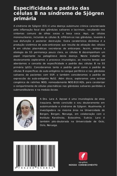 A síndrome de Sjögren (SS) é uma doença autoimune crónica caracterizada pela inflamação focal das glândulas salivares e lacrimais, resultando nos sintomas comuns de olhos secos e boca seca. Aqui, as células mononucleares, incluindo as células B, infiltram-se nas glândulas, levando à sua disfunção e posterior destruição. Outra caraterística distintiva é a produção sistémica de auto-anticorpos que resulta da ativação das células B em células plasmáticas secretoras de anticorpos. Assim, embora a etiologia da SS permaneça pouco clara, as células B desempenham um papel importante na patogénese desta doença. Neste trabalho de doutoramento exploramos o processo imunológico, ao mesmo tempo que abordamos o conceito de especificidade e padrão das células B na SS primária (pSS). Consideramos tanto o padrão geral como o padrão de células B específicas do auto-antigénio no sangue periférico e nas glândulas salivares de pacientes com SSP, e também consideramos o padrão de expressão do auto-antigénio Ro52. Além disso, exploramos uma estirpe congénica de ratinhos NOD, nomeadamente NOD.B10.H2b, para caraterizar o compartimento de células plasmáticas nas glândulas salivares parótidas e submandibulares e na medula óssea.
