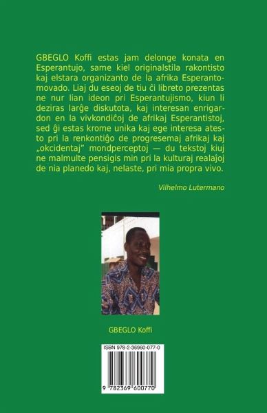 Koffi GBEGLO, konata Esperantisto en Togolando - same kiel originalstila raktontisto kaj elstara organizanto de la afrika Esperanto-movado - prezentas ¿i tie siajn ideojn pri kiel estas kaj devus esti Esperantujo, en du eseoj: "Esperanto en la interna vivo de afrikanoj" kaj "Esperantujismo: Dek tri unuaj vortoj". Li ¿atus, ke liaj ideoj estu kiom eble plej lar¿e diskutataj. La libreto donas interesan enrigardon en la vivkondi¿oj de afrikaj Esperantistoj, sed ¿i estas krome unika kaj ege interesa atesto pri la renkonti¿o de progresemaj afrikaj kaj "okcidentaj" mondperceptoj.