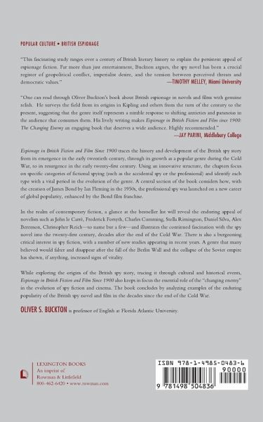 This book explores the role of the spy novel and film in twentieth and twenty-first century British culture, discussing their origins, literary and political significance, and central authors of the genre. It examines the intimate connections between the fictional treatment of espionage and the historical developments of intelligence operations.