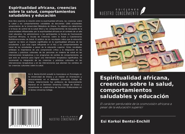 Este libro examina la relación entre la espiritualidad africana, las creencias sobre la salud y los comportamientos saludables de doscientos (200) estudiantes universitarios de la Universidad Metodista de Ghana. Su objetivo era determinar si el locus de control de la salud (HLC) y los comportamientos de búsqueda de la salud estaban influenciados por la espiritualidad africana en el contexto de un alto nivel educativo. Se administraron a los participantes la Escala de Cosmovisión Espiritual Africana, la Escala de Creencias sobre la Salud y Cuestionarios Multidimensionales de Salud. El análisis de los resultados indica que la educación superior no tiene un impacto significativo en la espiritualidad africana de los estudiantes y que esta sigue influyendo en el HLC y los comportamientos de salud de los estudiantes a pesar de la educación superior. Estos resultados enfatizan la importancia de una comprensión crítica y la integración de las creencias y prácticas culturales de las personas en materia de salud en las intervenciones terapéuticas y los programas de cambio de comportamiento, ya que esto es esencial para lograr una intervención terapéutica significativa. Se recomendó la integración de las creencias y prácticas culturales en las intervenciones terapéuticas y en las intervenciones que abordan los cambios en las creencias culturales sobre la salud.