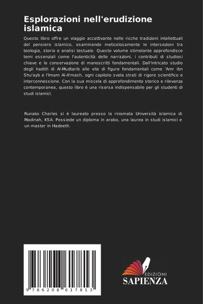 Questo libro offre un viaggio accattivante nelle ricche tradizioni intellettuali del pensiero islamico, esaminando meticolosamente le intersezioni tra teologia, storia e analisi testuale. Questo volume stimolante approfondisce temi essenziali come l'autenticità delle narrazioni, i contributi di studiosi chiave e la conservazione di manoscritti fondamentali. Dall'intricato studio degli hadith di Al-Mudtarib alle vite di figure fondamentali come 'Amr ibn Shu'ayb e l'Imam Al-A'mash, ogni capitolo svela strati di rigore scientifico e interconnessione. Con la sua miscela di approfondimento storico e rilevanza contemporanea, questo libro è una risorsa indispensabile per gli studenti di studi islamici.